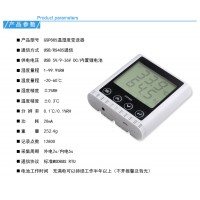 1、供电电压:9~36VDC或USB 5V或内置锂电池 2、显示分辨率:0.1℃或0.1%RH 3、工作温度:-20~+60℃;精度:±0.3℃ 4、工作湿度:1~99.9%RH;精度:±2%RH 5、采样周期:外电:2s 内置电池:5s 6、记录点数:12800(最大) 7、功耗:外电:<20mA 锂电池:<2mA 8、灵敏度衰减值:温度<0.1℃;湿度<0.1%RH 9、电池工作时间:充满电可以持续工作半年以上(不开报警及背光) 10、输出信号:RS485信号 11、通信协议:标准MODBUS RTU协议